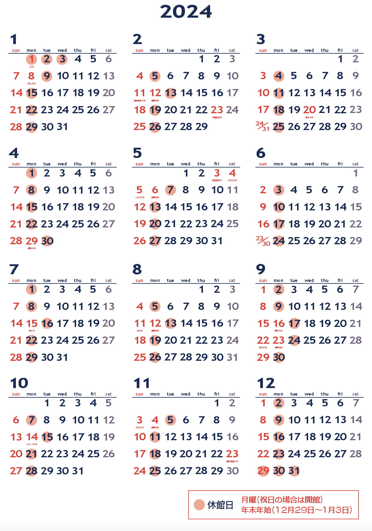 開館日カレンダー